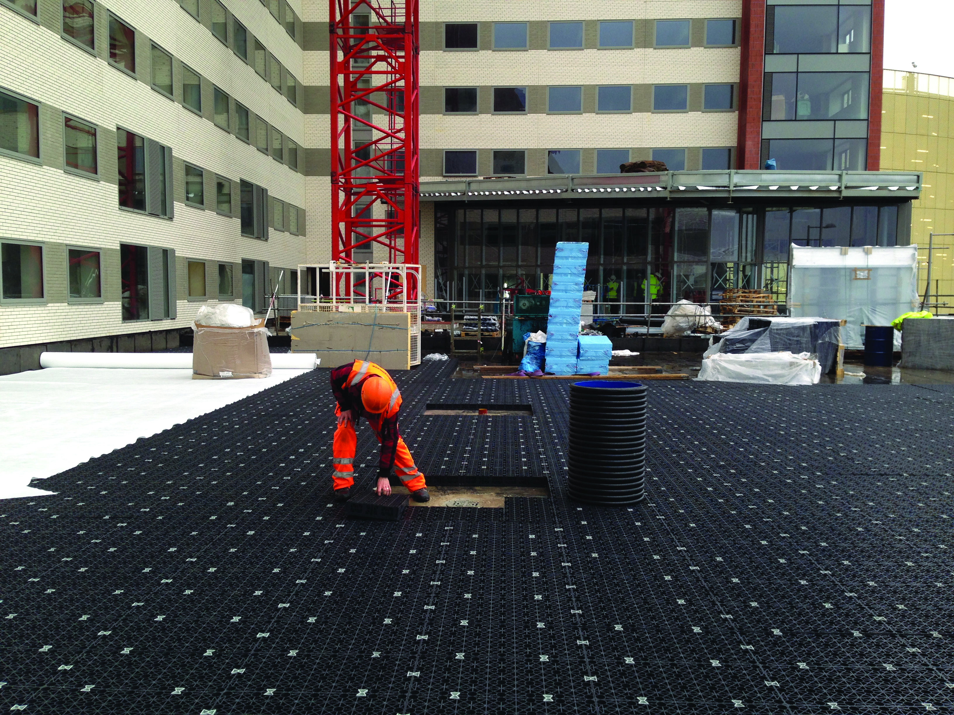 Permavoid Podium Deck provides ideal first-stage rainwater interception and source control that can be easily integrated into an overall SuDS solution. Having a 95% void ratio, Permavoid can collect and retain three times more water than aggregate sub-bases, making it ideal for projects where depths and loadings are a major consideration such as at Unite Stratford.